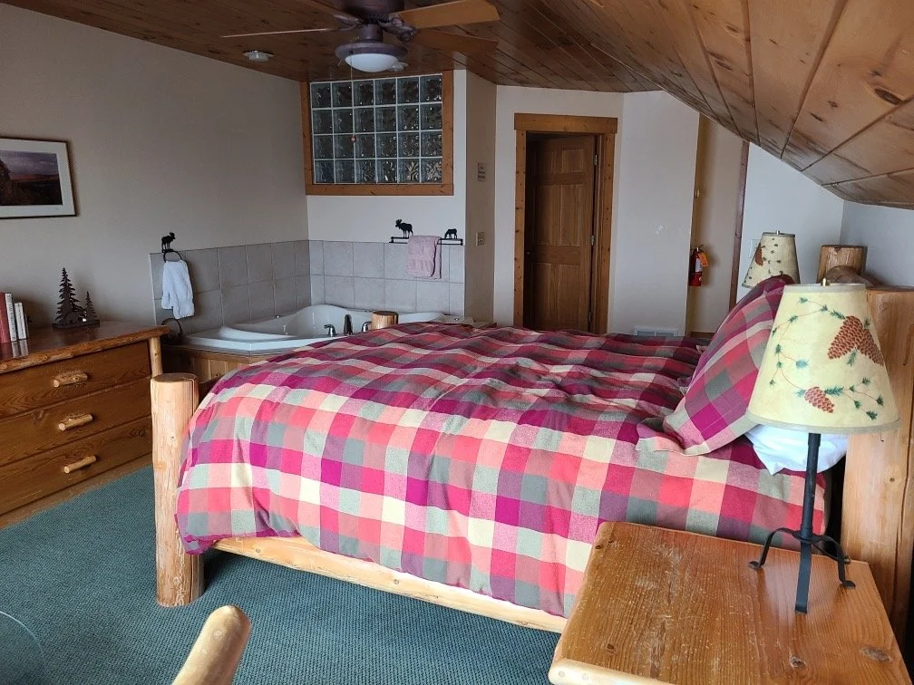 A queen-sized bed with a jacuzzi tub and views of Lake Superior. What more could you need for a weekend away?